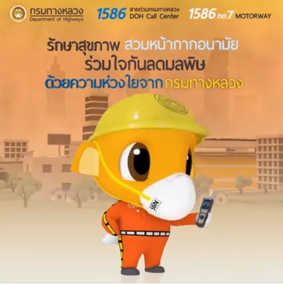 ...เพราะเราห่วงใย ผู้ใช้ทาง รักษาสุขภาพ รณรงค์ให้สวมหน้ากากอนามัย และร่วมใจกันลดมลพิษ เพื่อพวกเราทุกคน ด้วยความห่วงใย จาก"กรมทางหลวง "