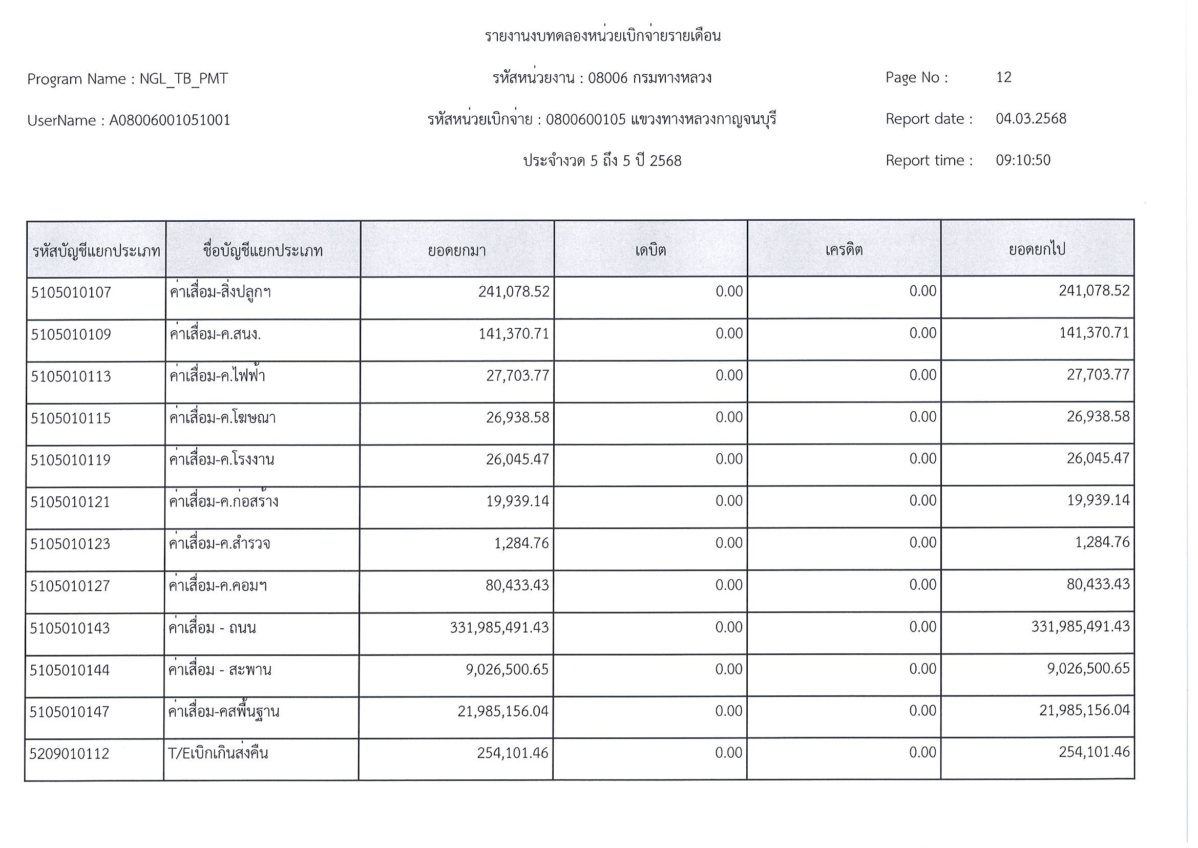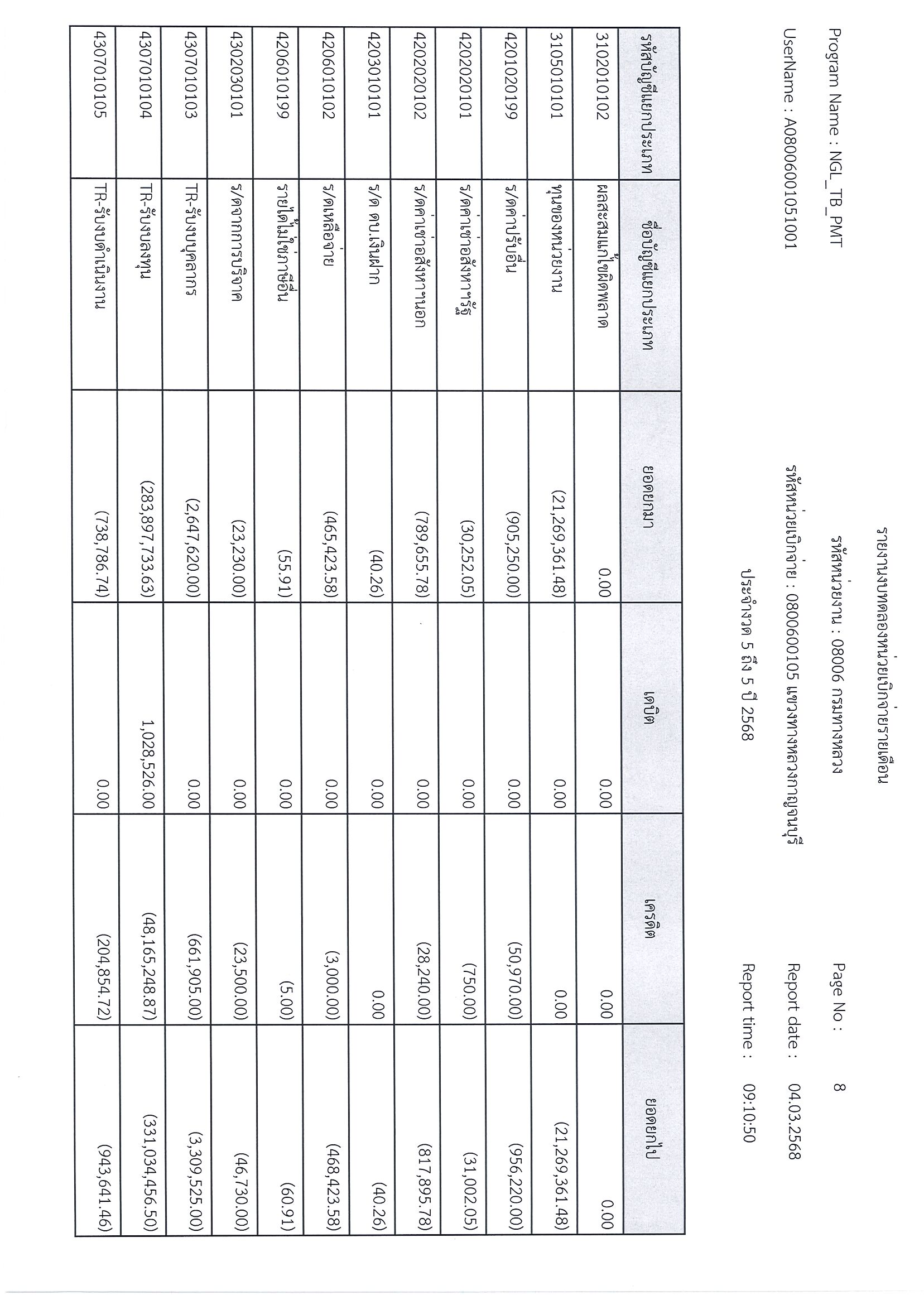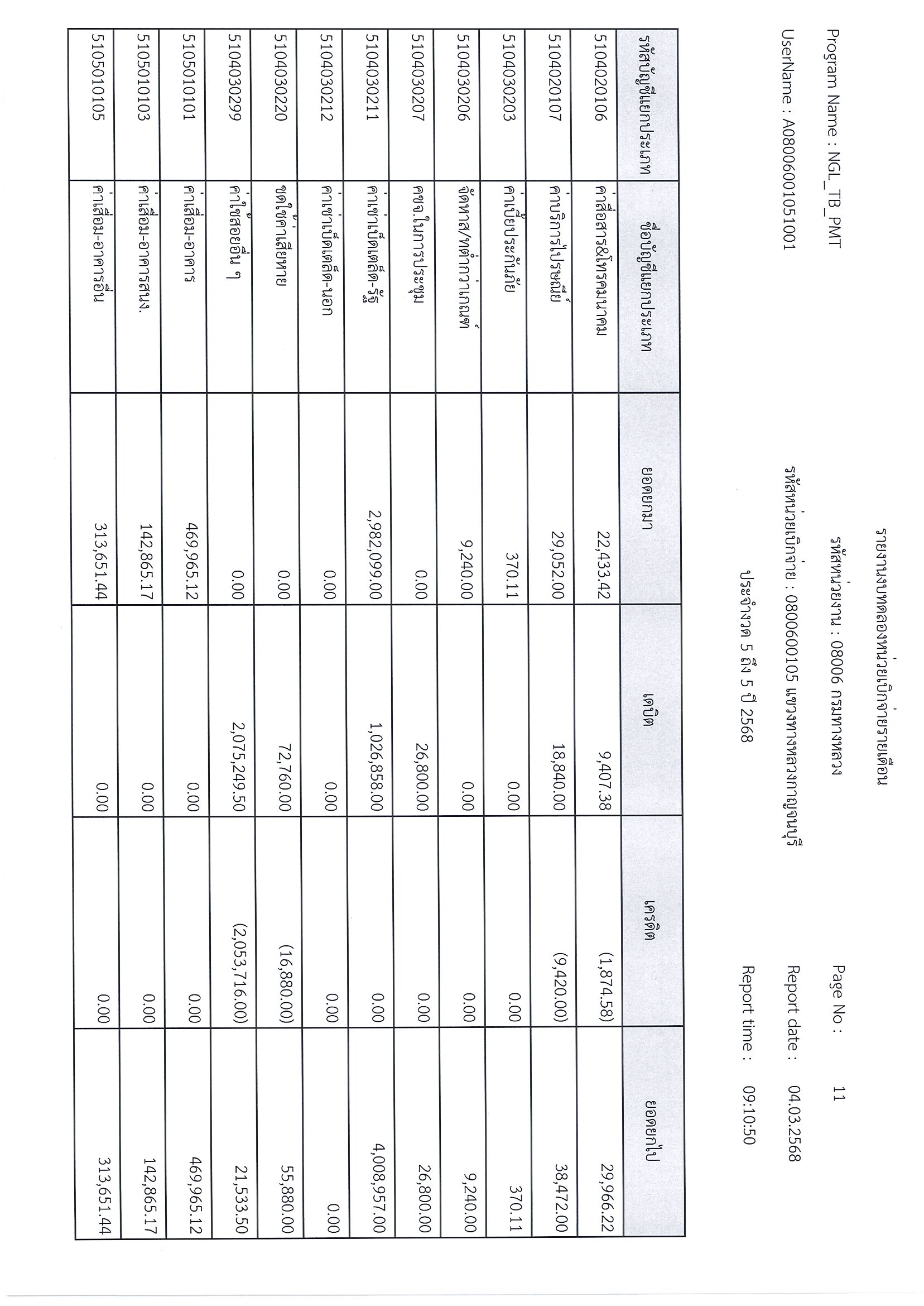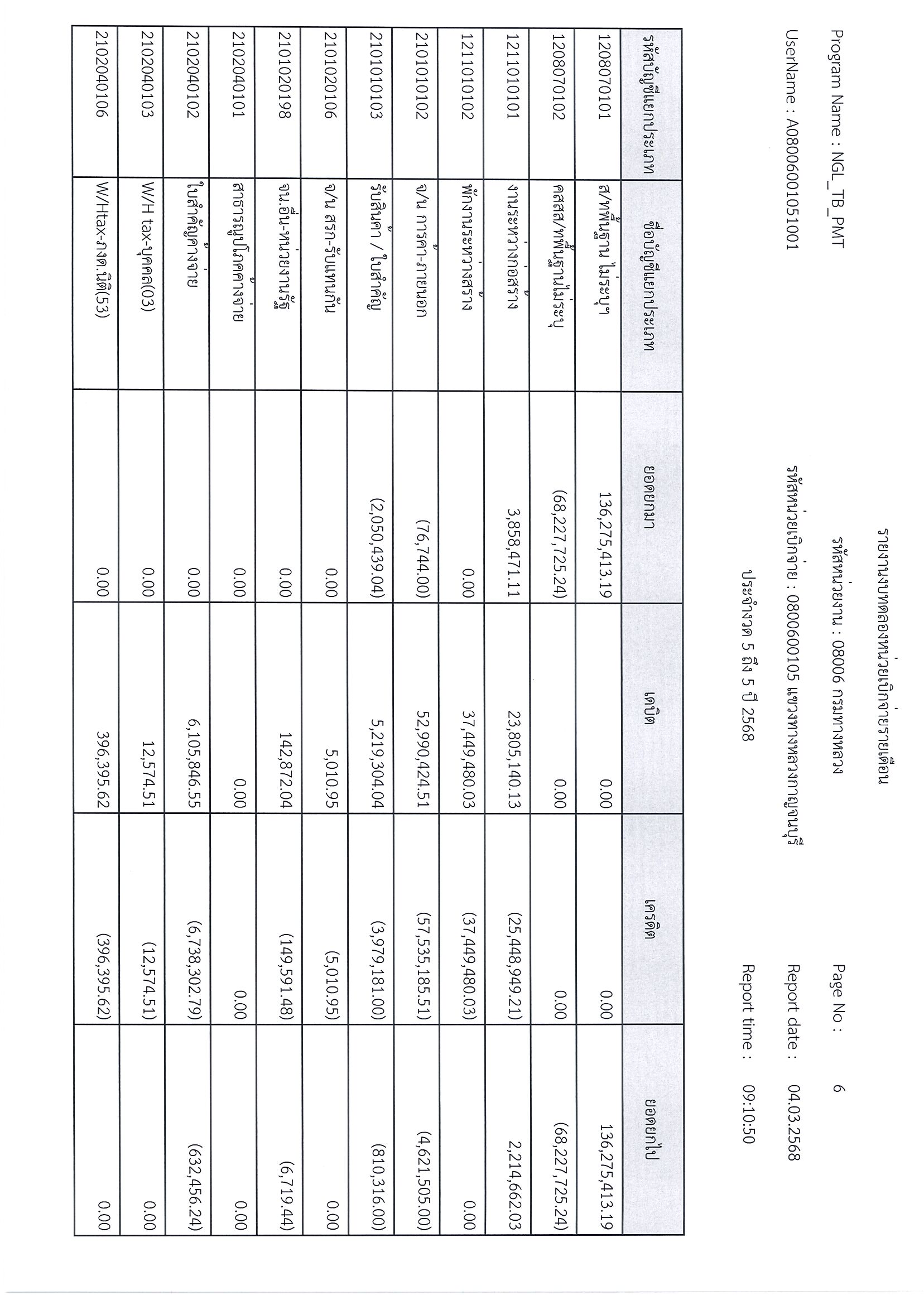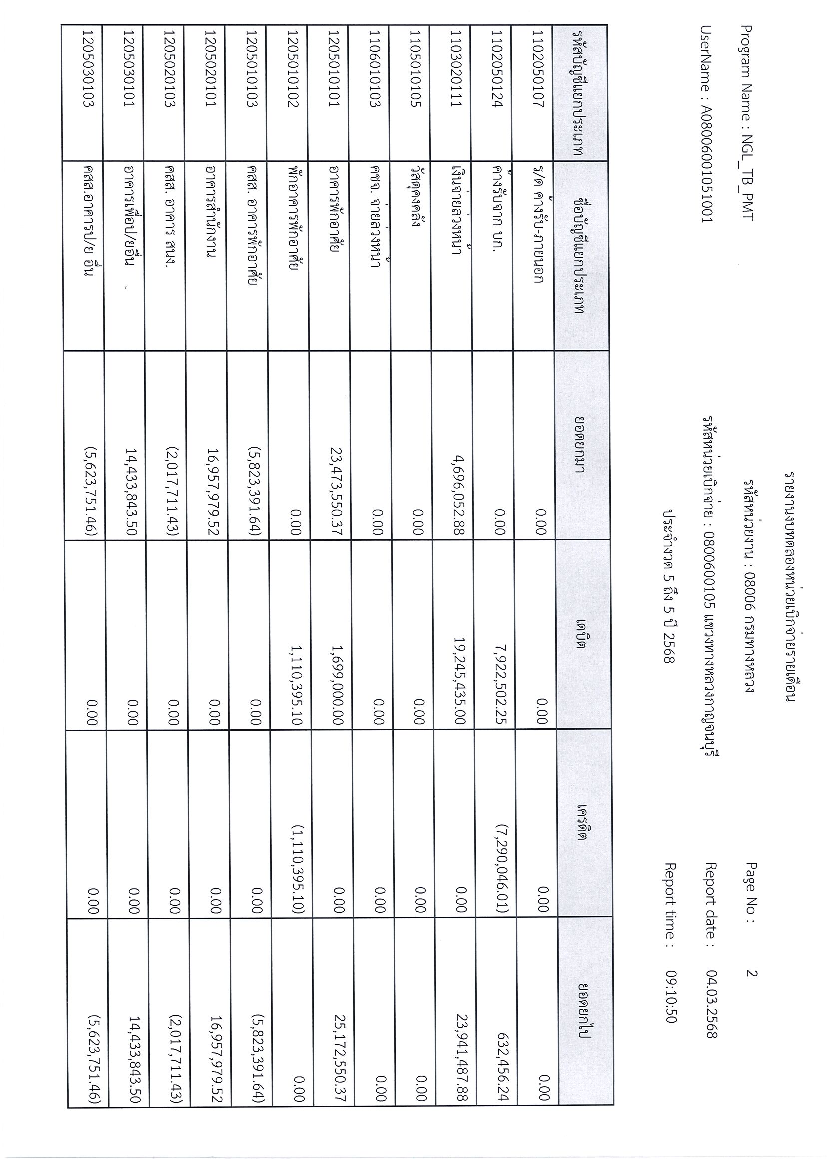 ข้อมูลข่าว : รายงานงบทดลอก ประจำงวด 5 ถึง 5 ปี 2568