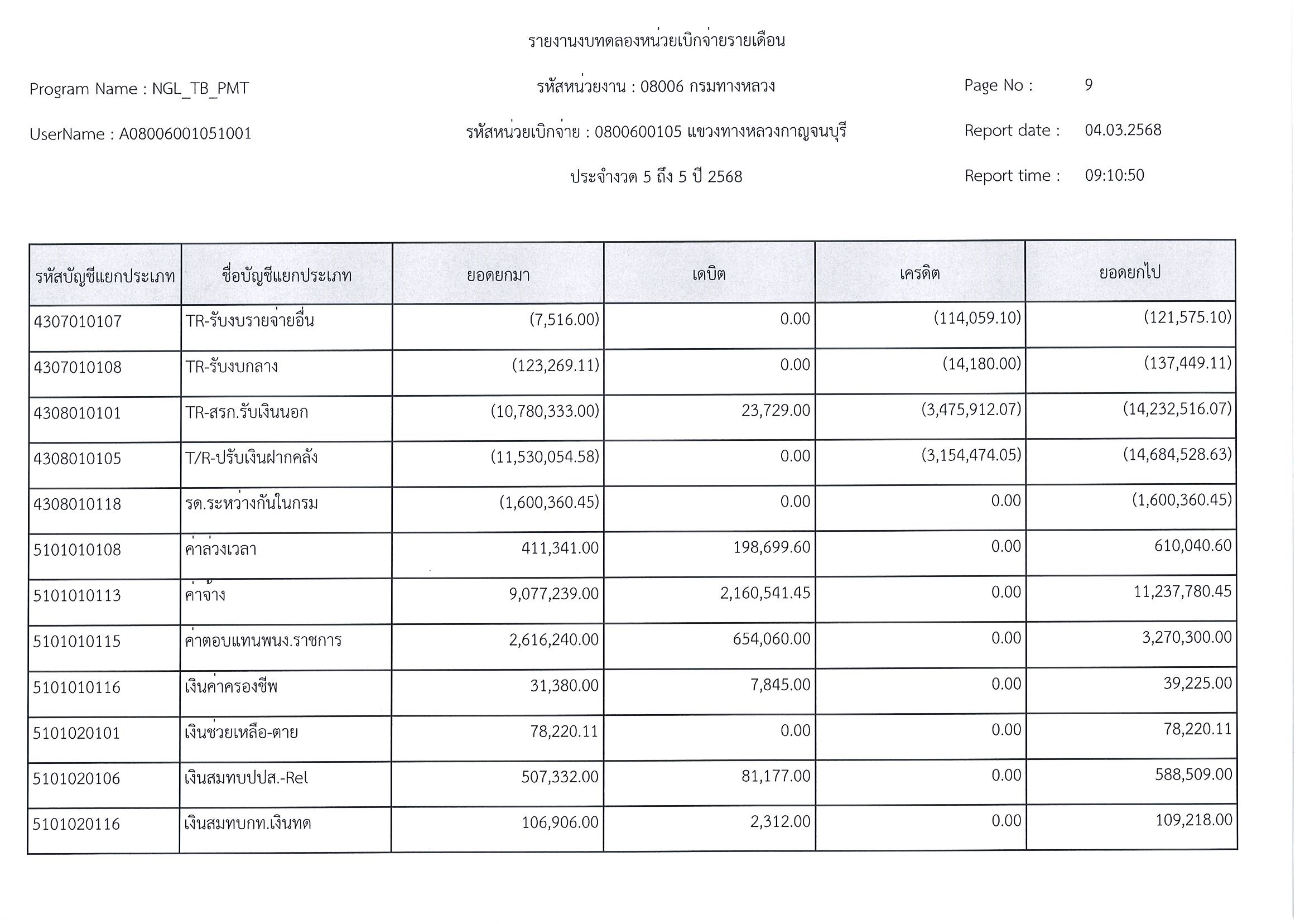 รายงานงบทดลอก ประจำงวด 5 ถึง 5 ปี 2568