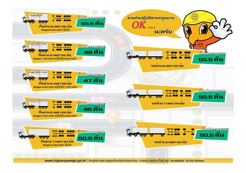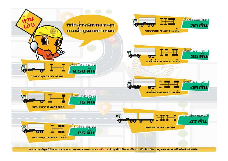 พิกัดน้ำหนักรถบรรทุก ตามที่กฏหมายกำหนด โดยกรมทางหลวง