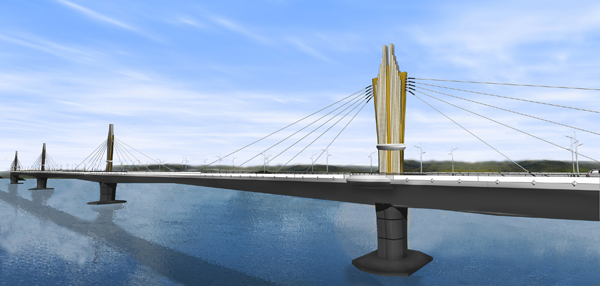 (Extradosed Prestress Concrete Bridge) ขนาด 2 ช่องจราจร มีไหล่ทางและทางเท้า