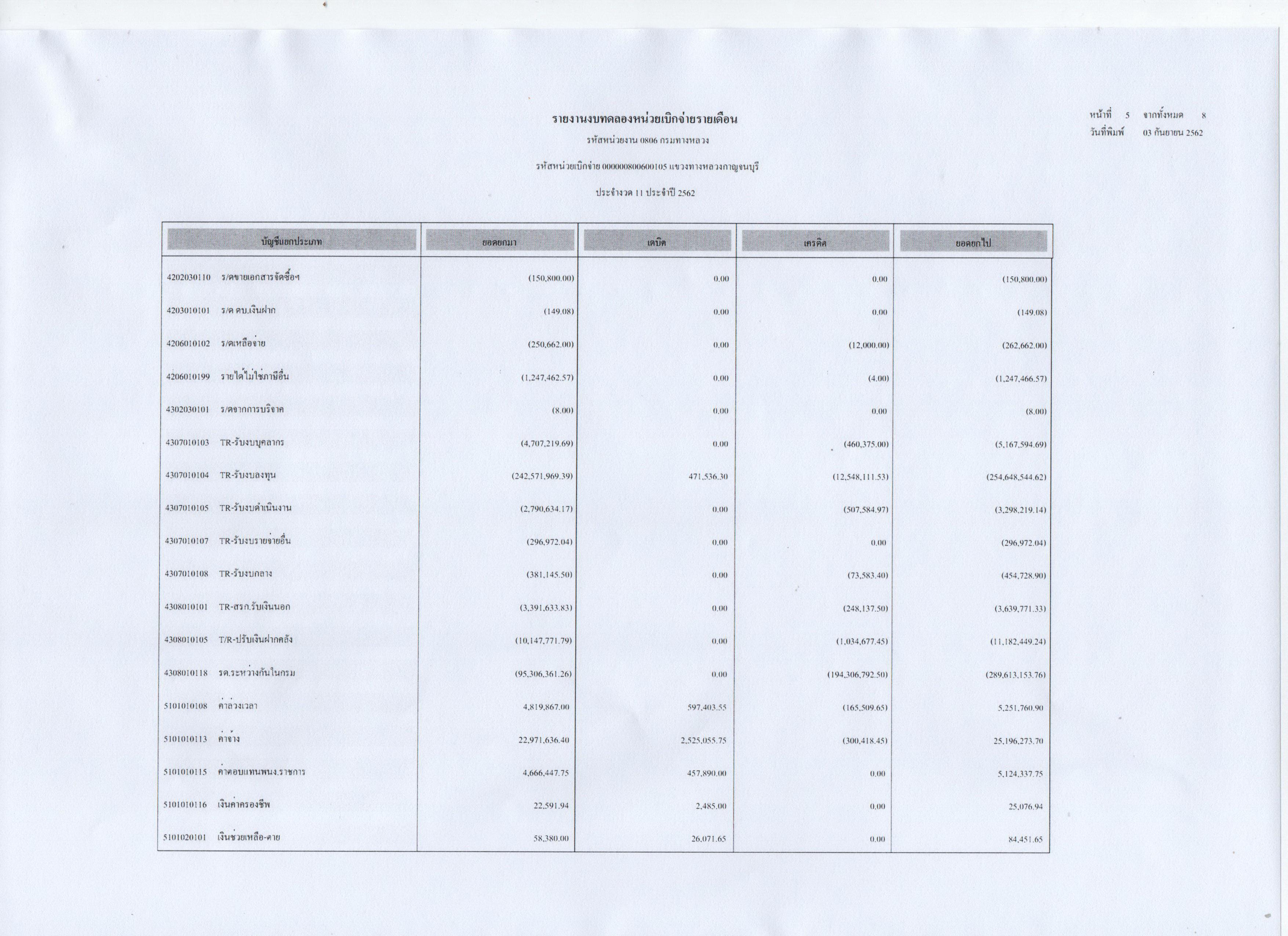 ข้อมูลข่าว : รายงานงบทดลองหน่วยเบิกจ่ายรายเดือน ประจำงวดที่ 11 ประจำปี 2562