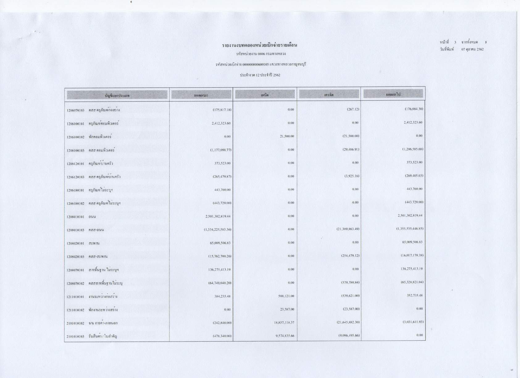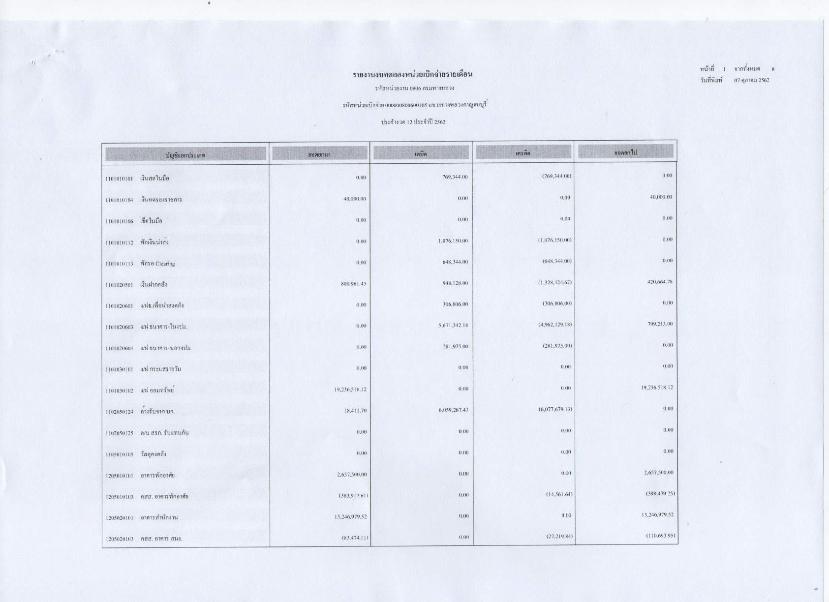 รายงานงบทดลองหน่วยเบิกจ่ายรายเดือน ประจำงวดที่ 12 ประจำปี 2562
