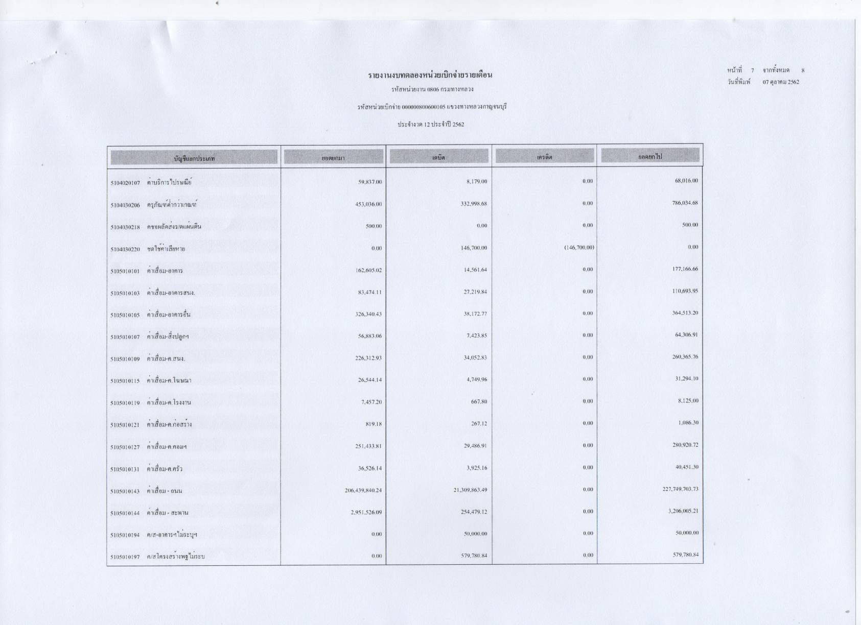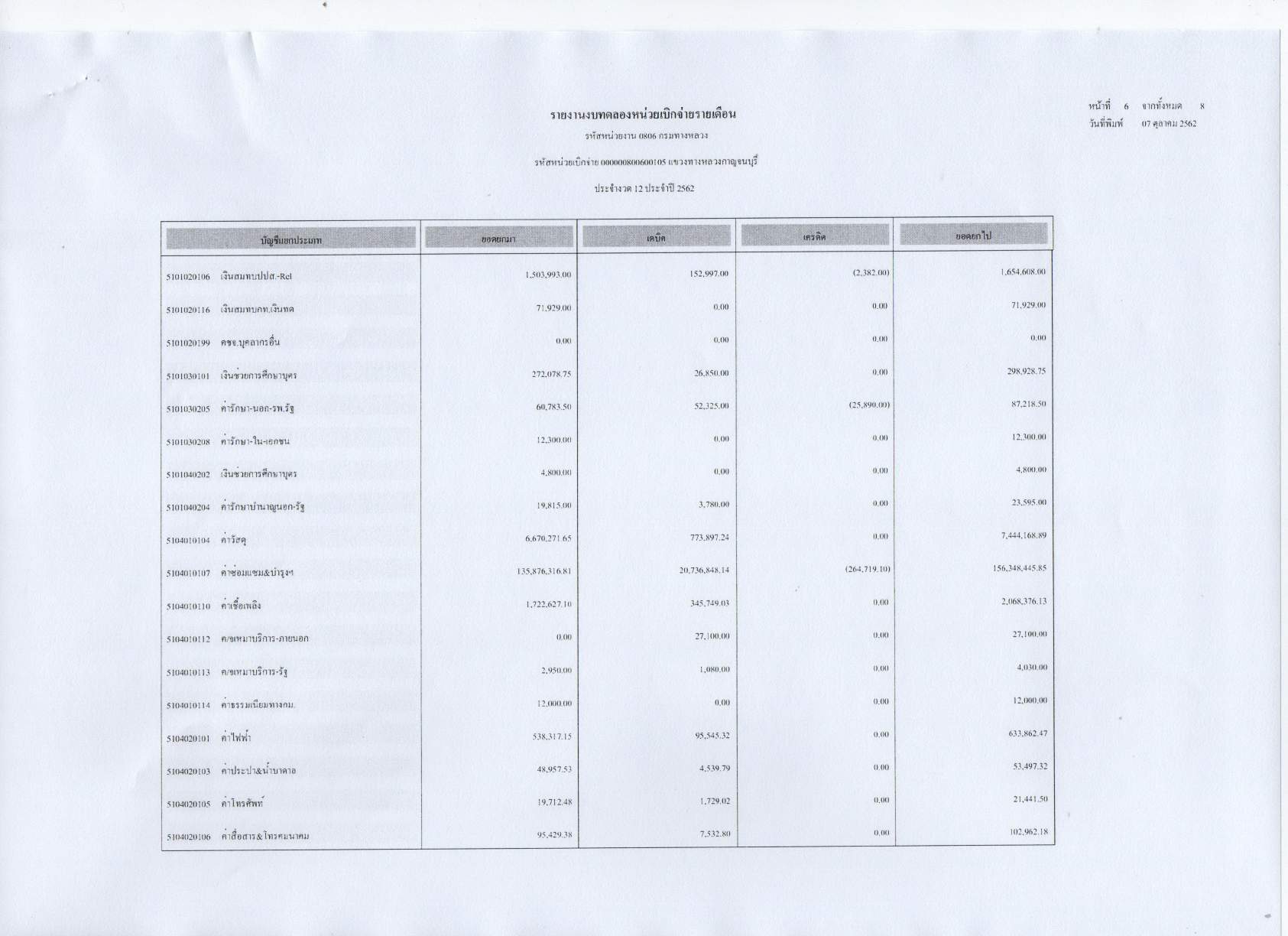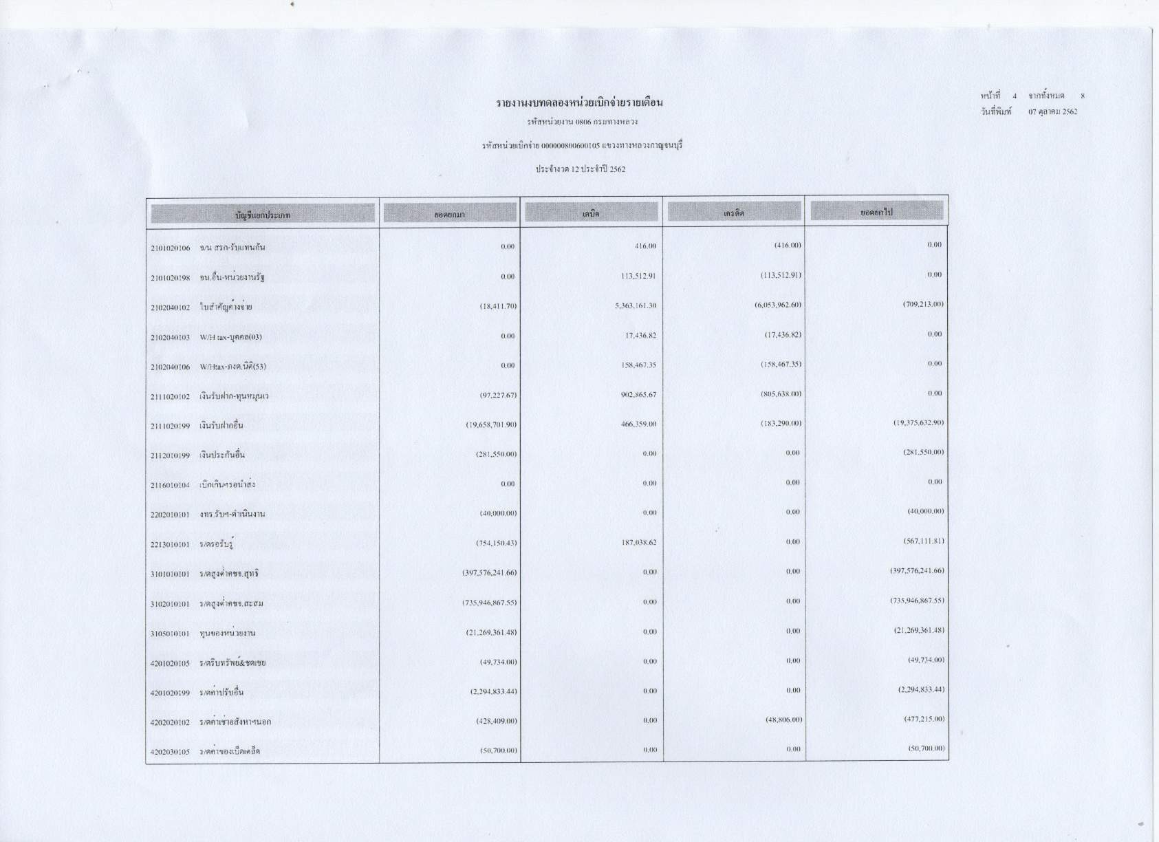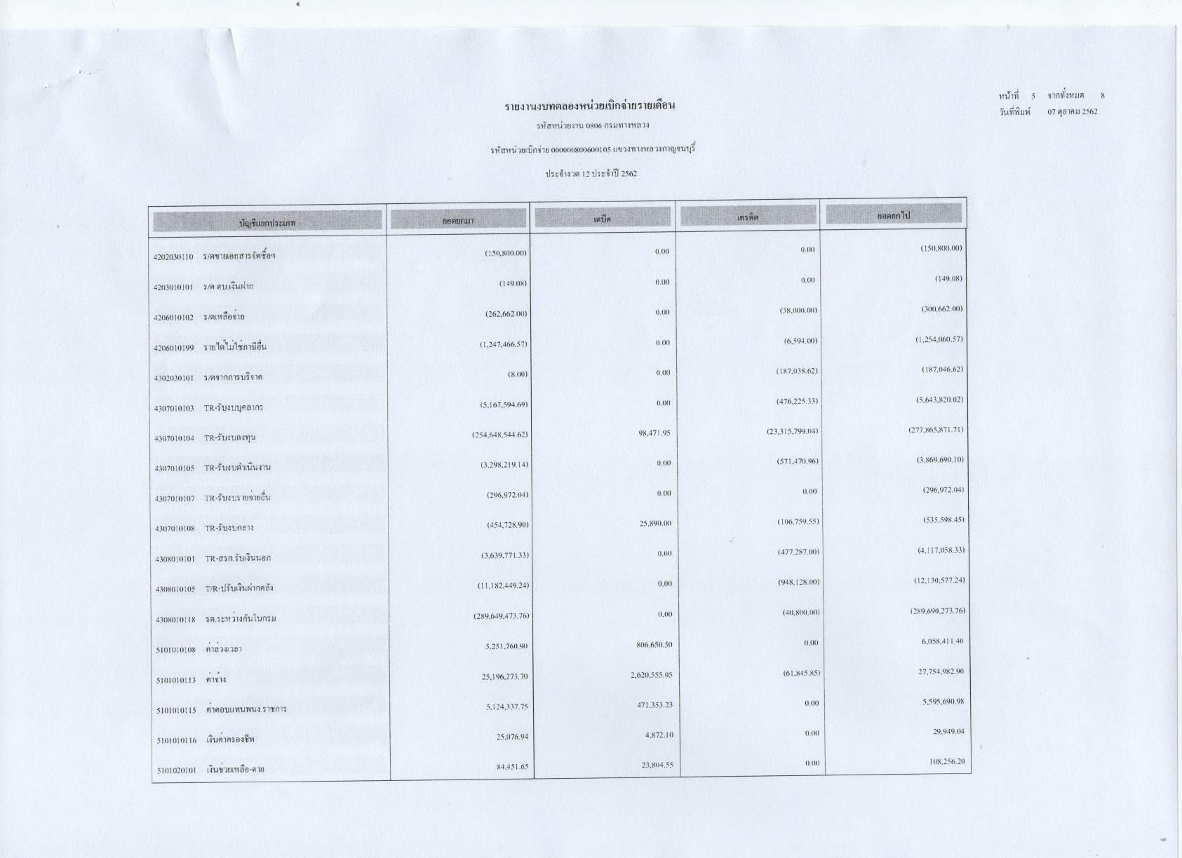 ข้อมูลข่าว : รายงานงบทดลองหน่วยเบิกจ่ายรายเดือน ประจำงวดที่ 12 ประจำปี 2562
