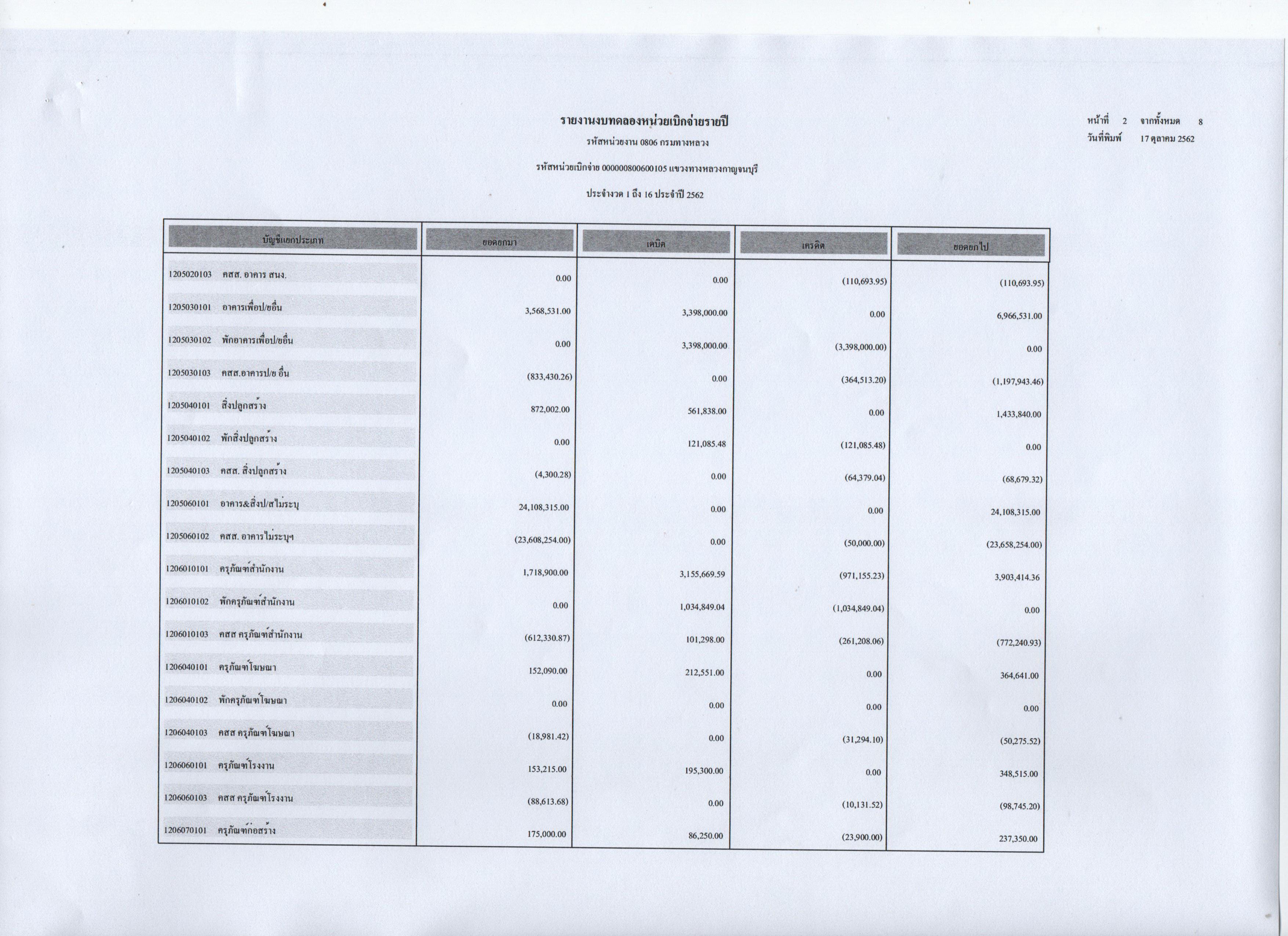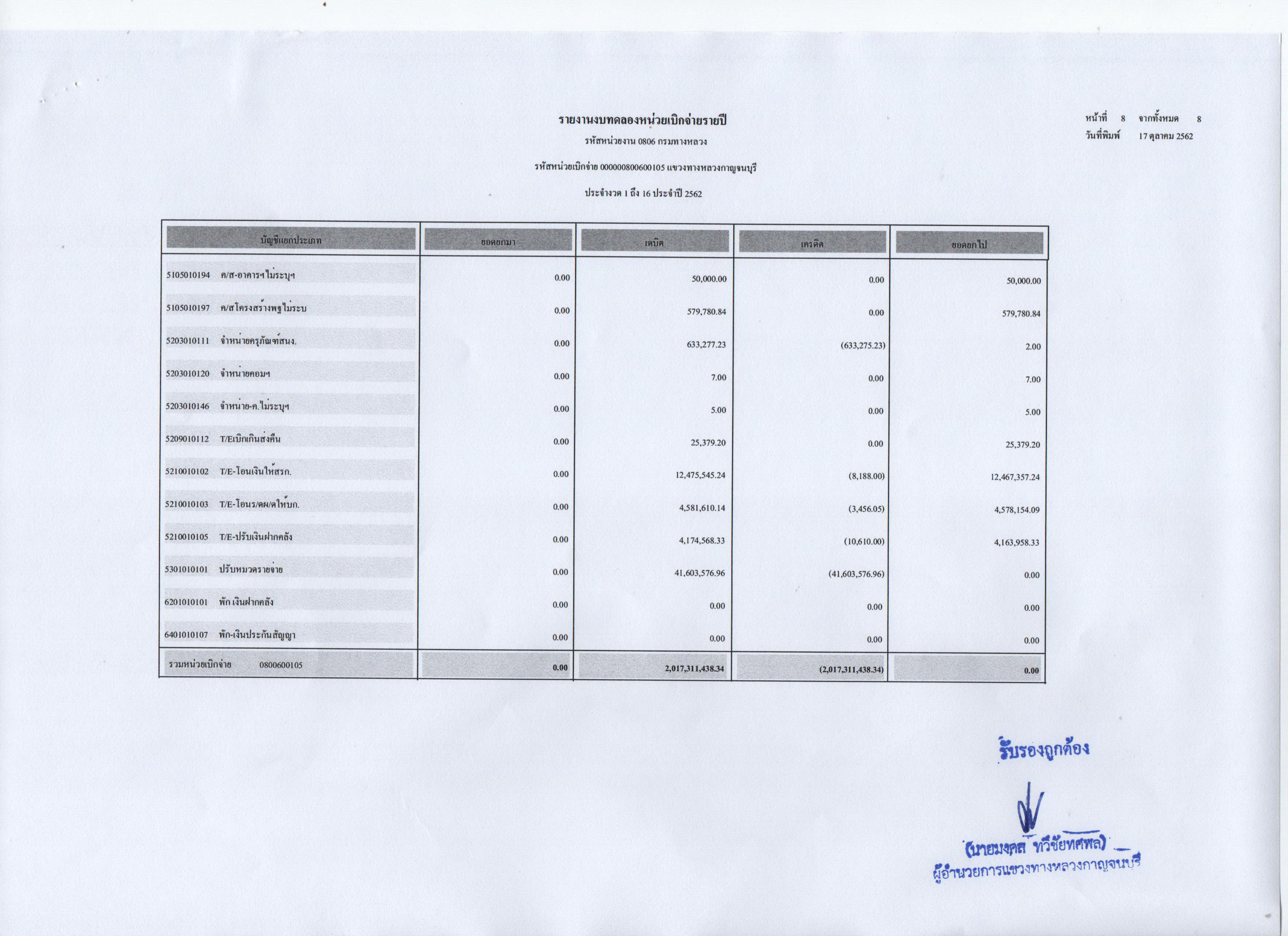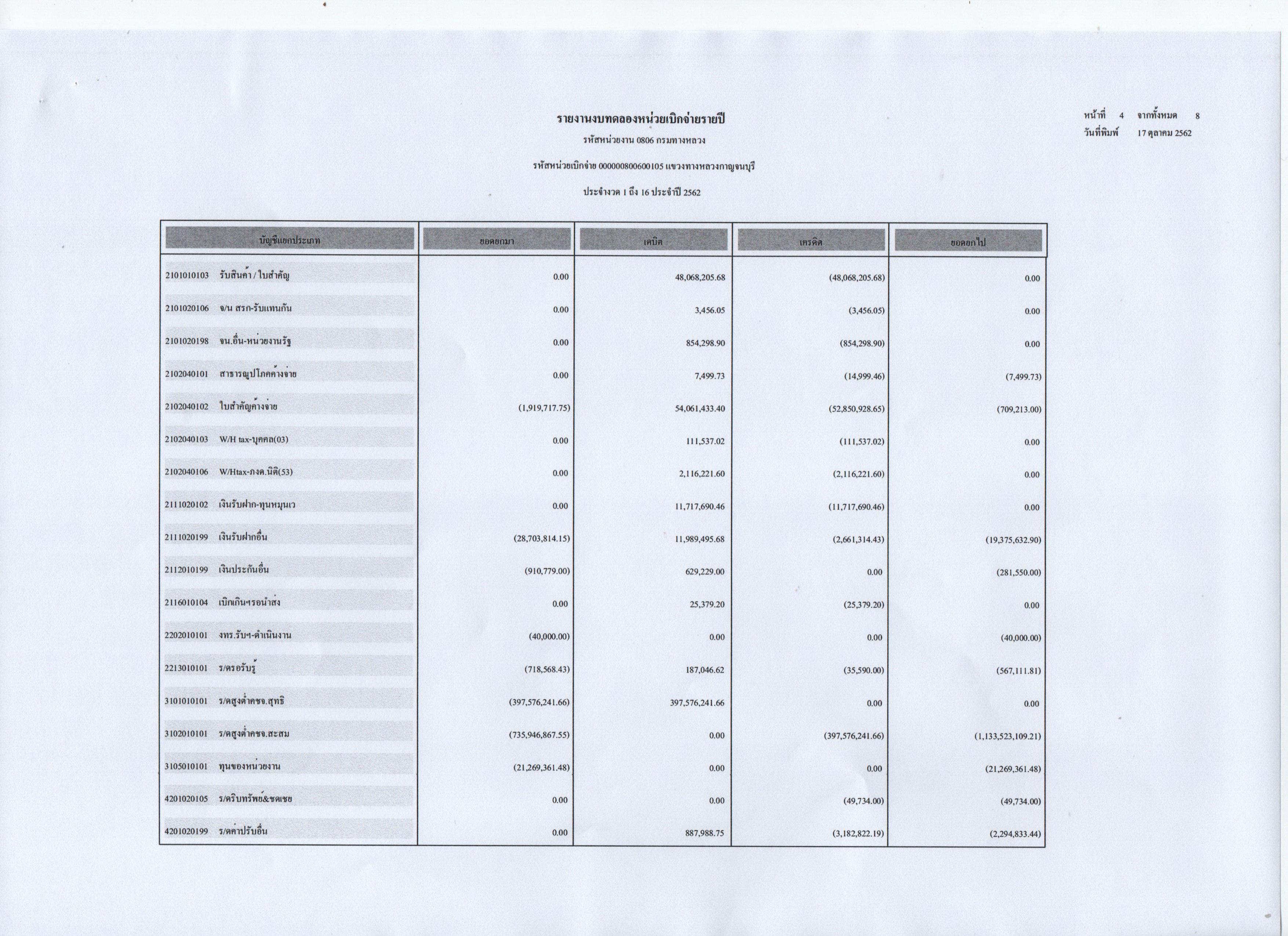 รายงานงบทดลองหน่วยเบิกจ่ายประจำปี 2562