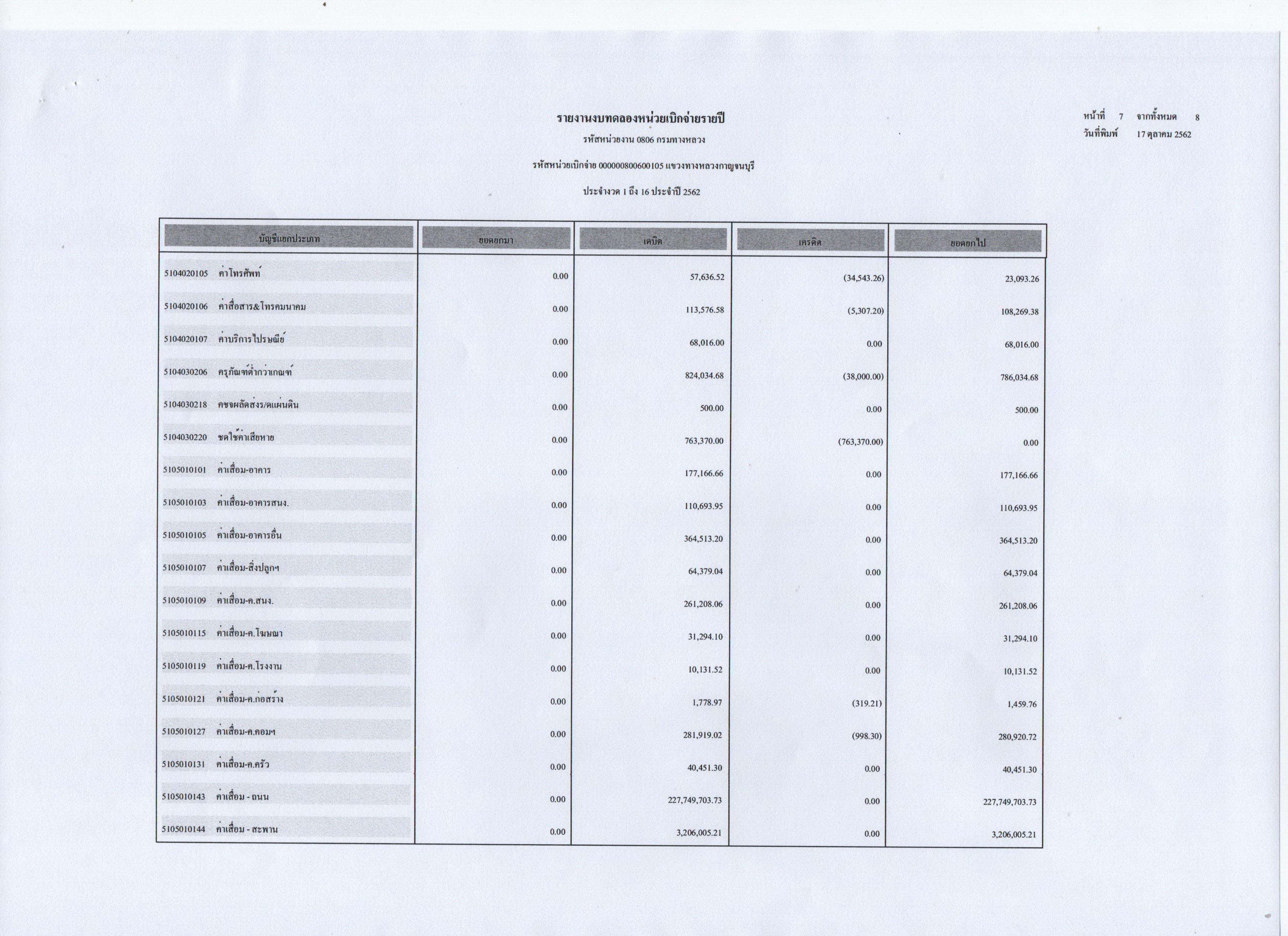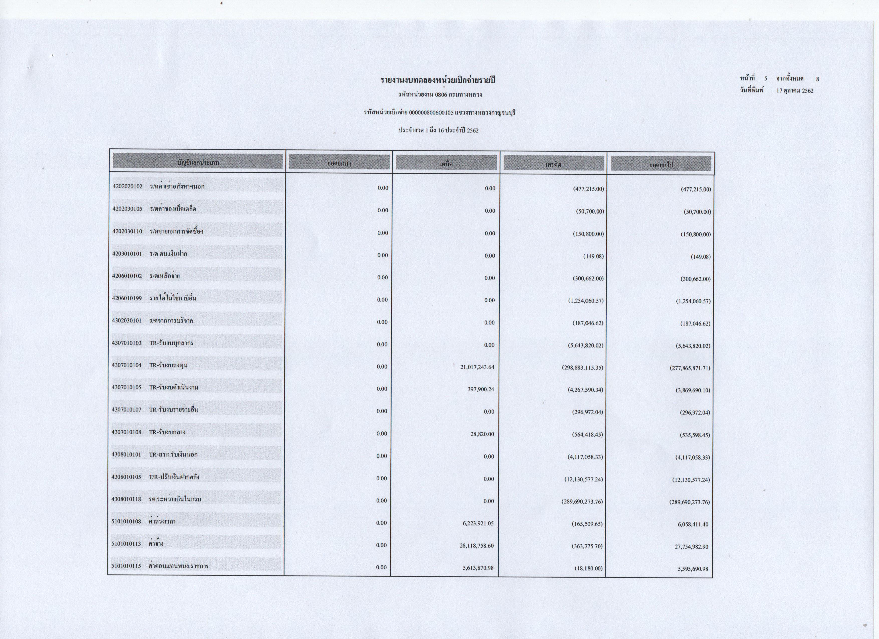 ข้อมูลข่าว : รายงานงบทดลองหน่วยเบิกจ่ายประจำปี 2562