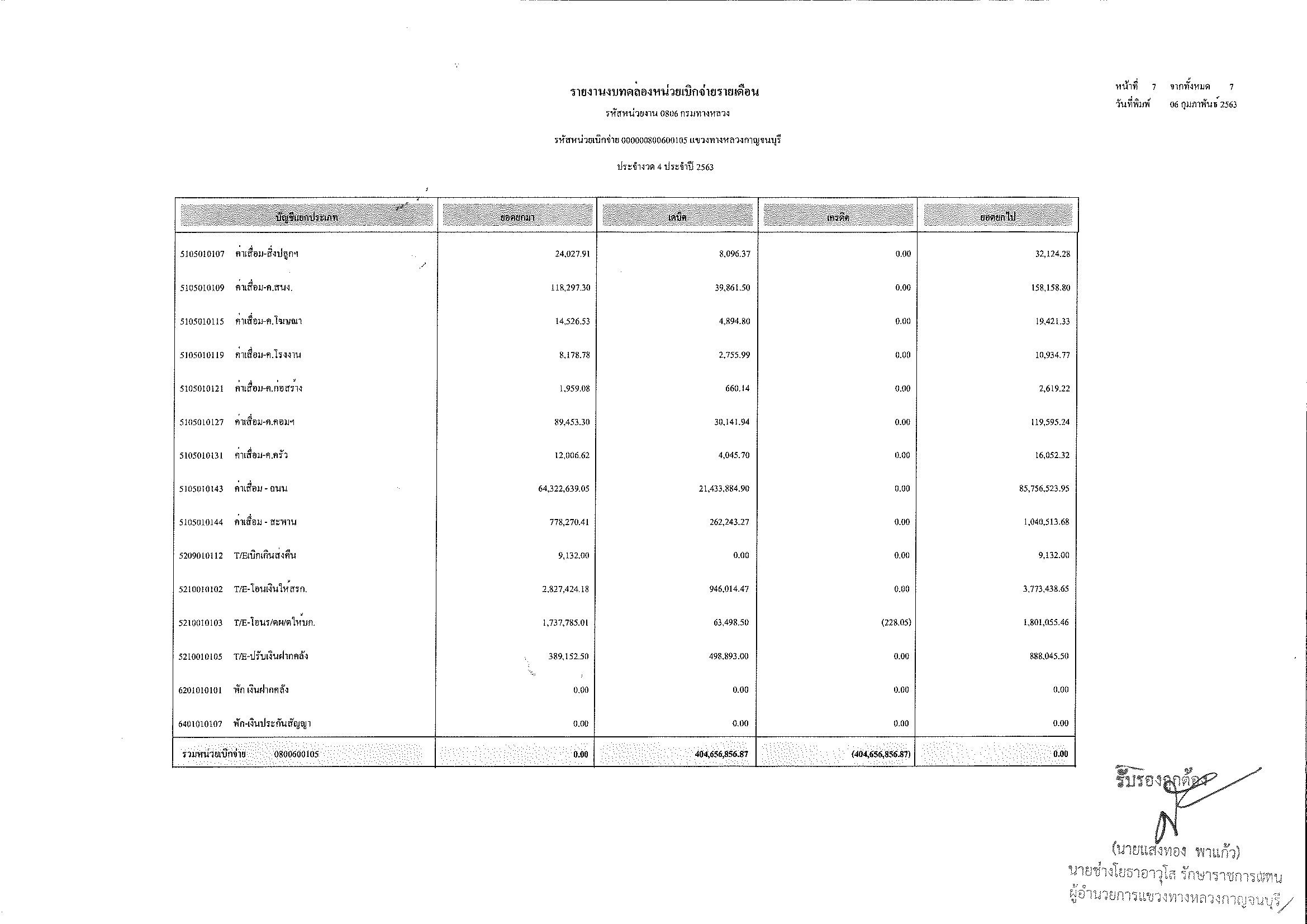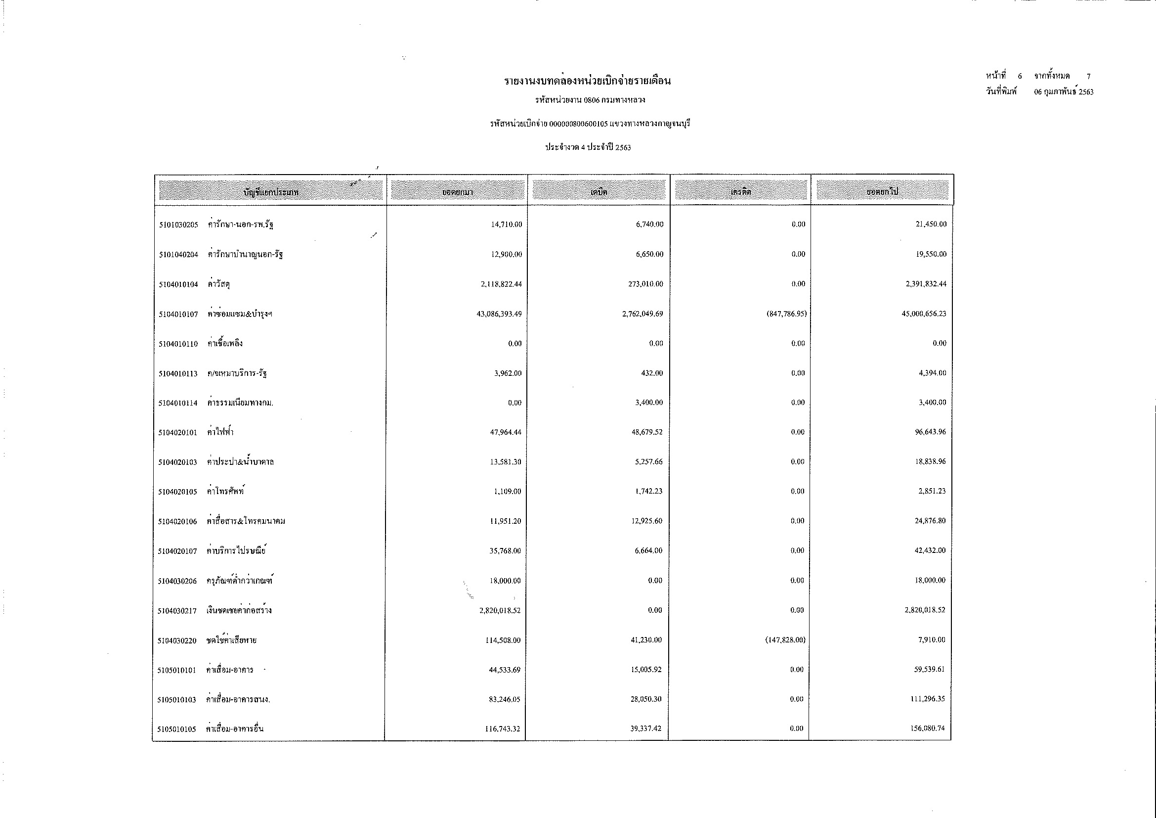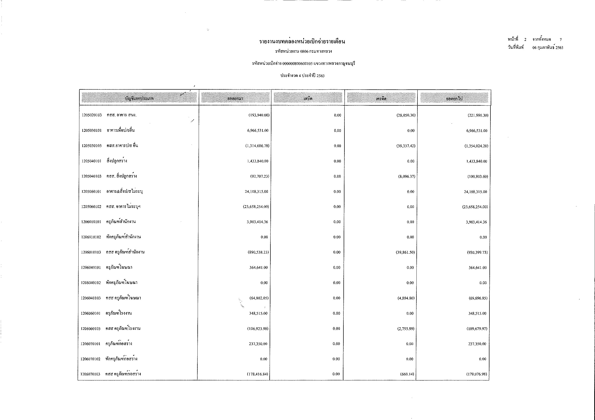 รายงานงบทดลองหน่วยเบิกจ่ายรายเดือน ประจำงวด 4 ประจำปีที่ 2563
