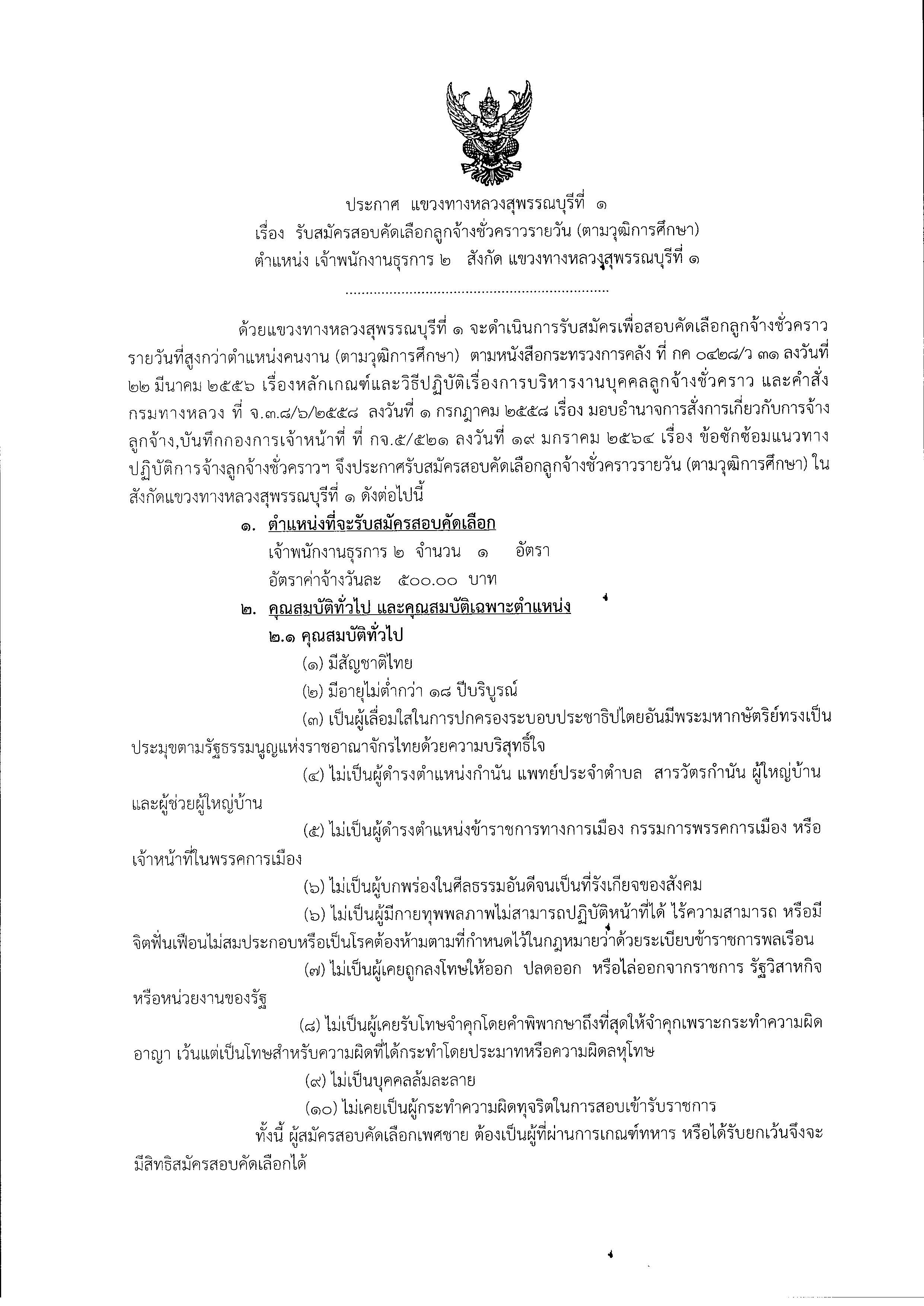 ????แขวงทางหลวงสุพรรณบุรีที่1 เปิดรับสมัคร เจ้าพนักงานธุรการ2 จำนวน 1 อัตรา รายละเอียดตามเอกสารแนบคะ สอบถามเพิ่มเติม 035-522940