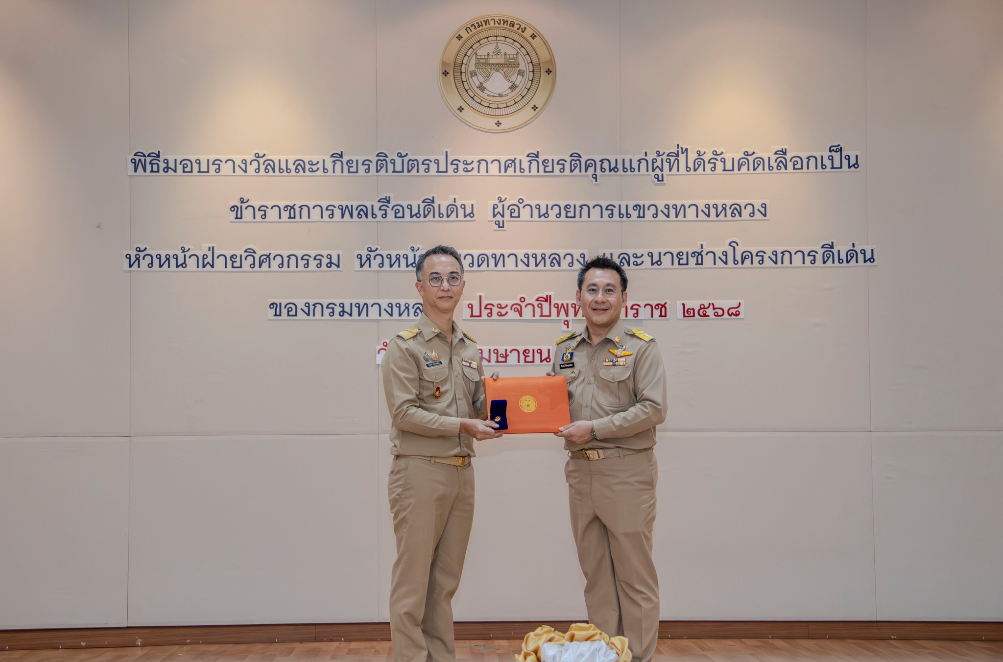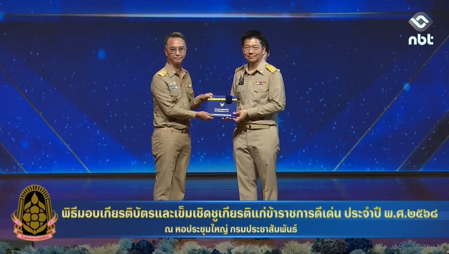 และ ได้เข้ารับเกียรติบัตรและเข็มเชิดชูเกียรติแก่ข้าราชการพลเรือนดีเด่น ประจำปี พ.ศ.2568