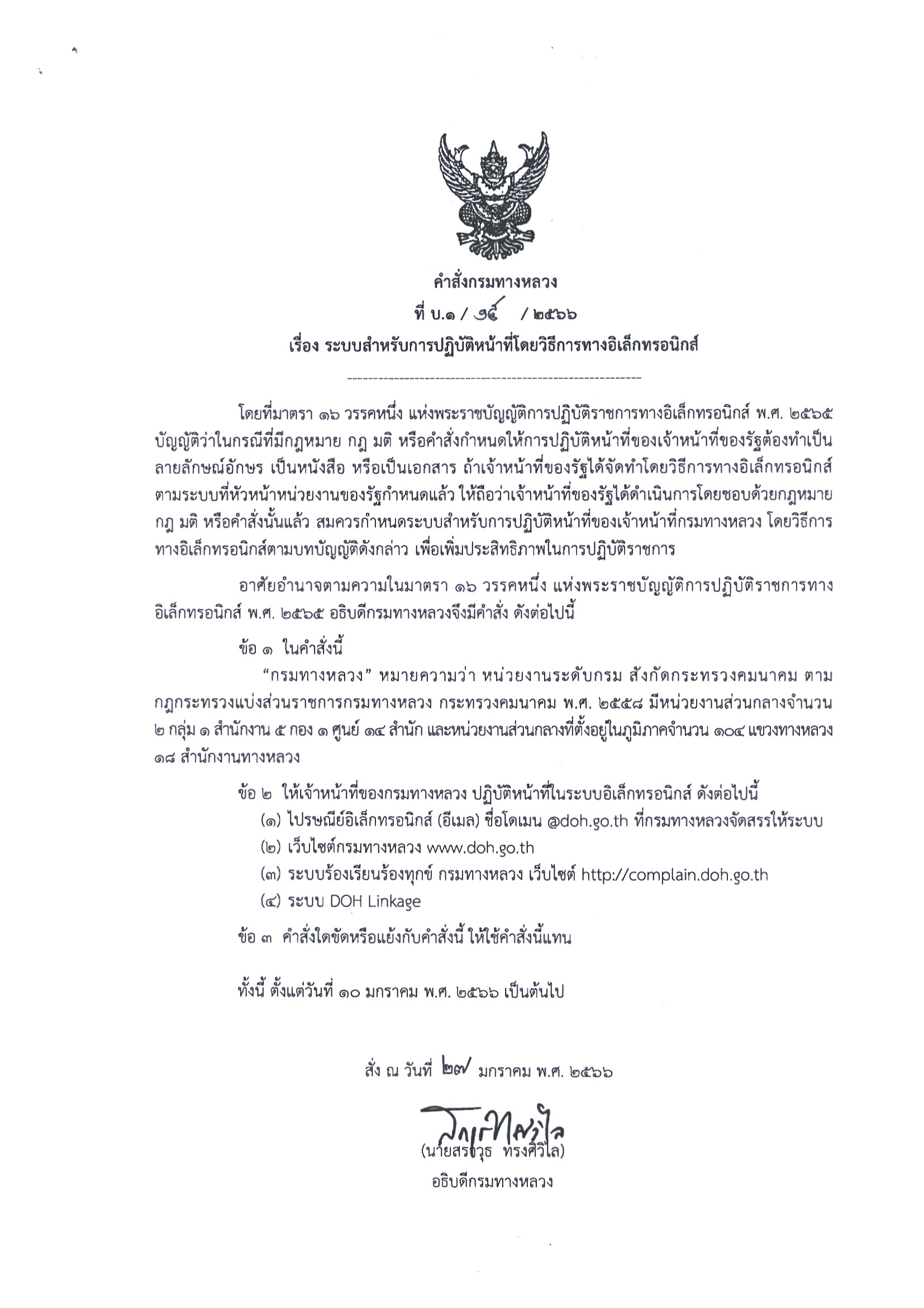 การเผยแพร่ประกาศกรมทางหลวง เรื่องช่องทางอิเล็กทรอนิกส์สำหรับติดต่อกรมทางหลวง พ.ศ.2566