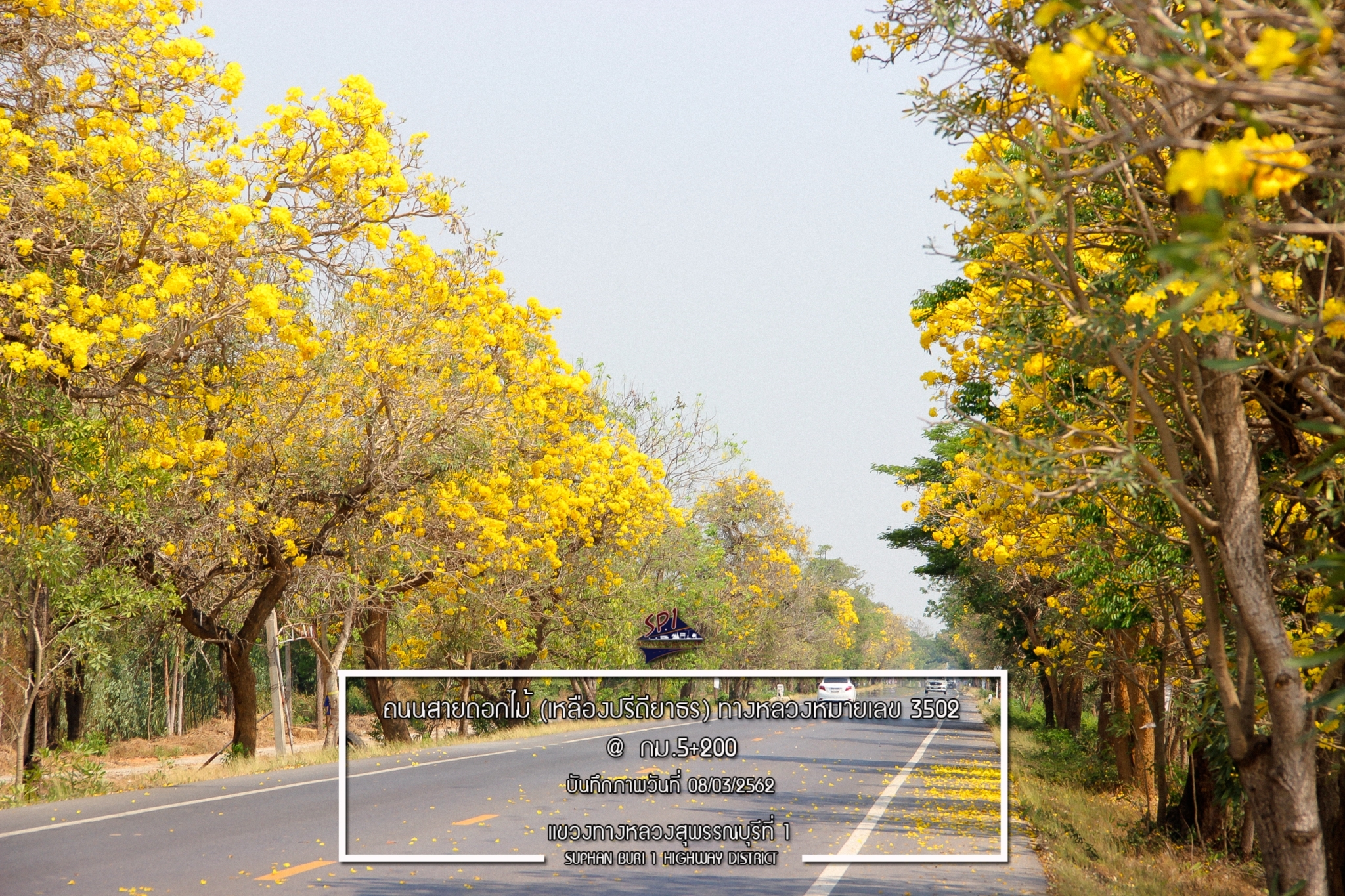 ถนนดอกไม้ ทางหลวงหมายเลข 3502สาย ดอนไร่-ด่านช้างต้นเหลืองปรีดียาธร เริ่มผลิดอก สีเหลืองในภาพ เป็นช่วง กม.0+000 - กม.6+000 ถ่ายเมื่อ วันที่ 11 มีนาคม 2562ปล. คาดหวัง ว่า ช่วงอื่นๆ ก็จะสวยงาม เช่นนี้