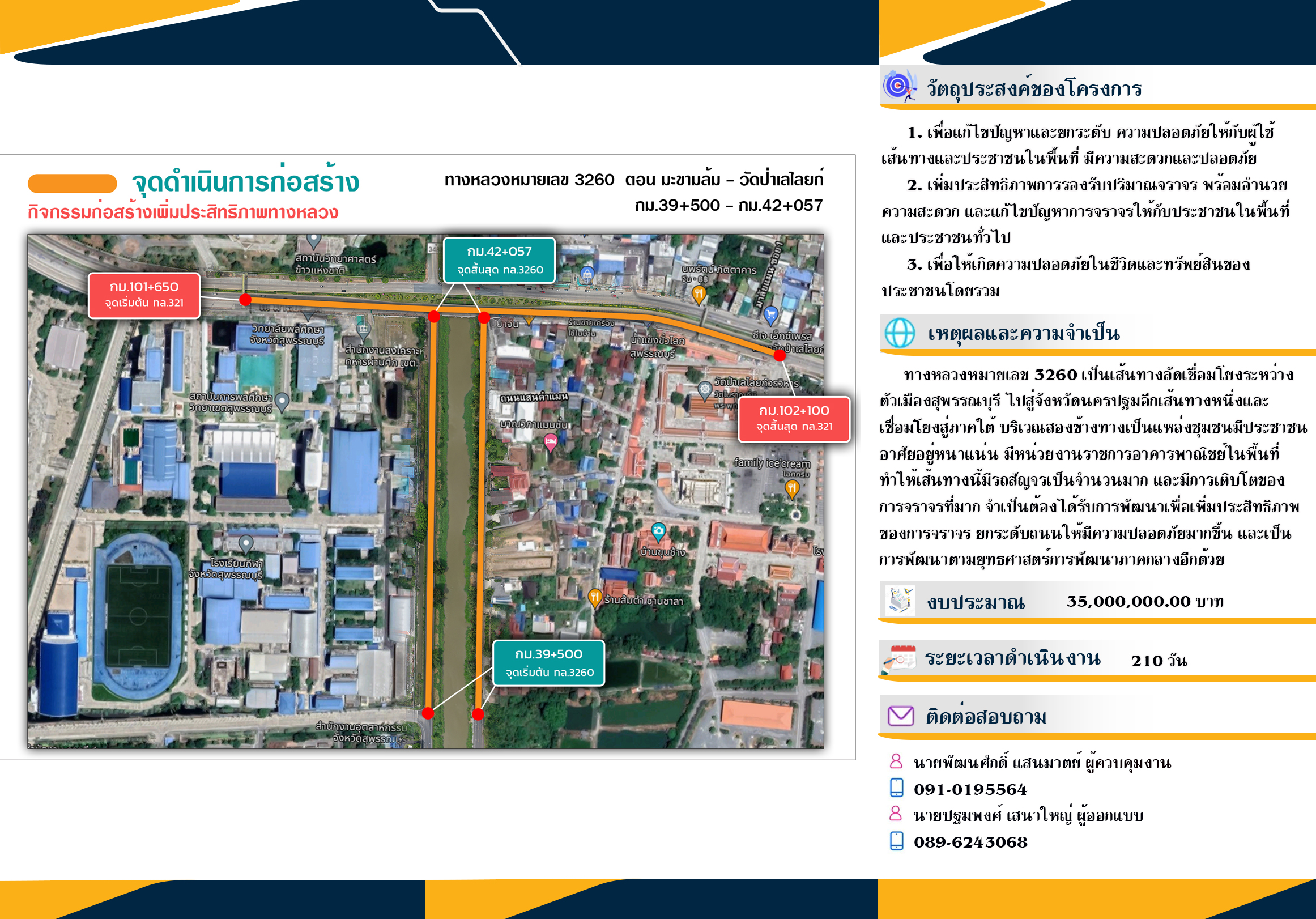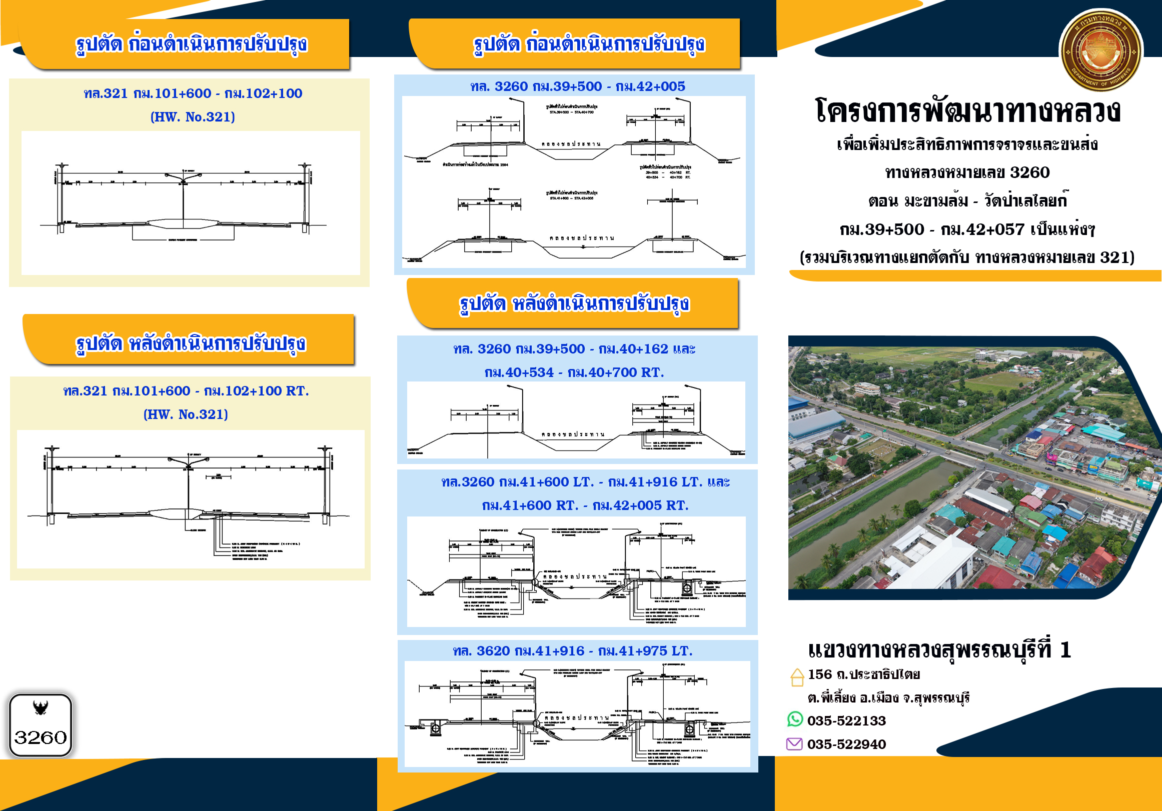 ทางหลวงหมายเลข 3260 ตอน มะขามล้ม - วัดป่าเลไลยก์ ระหว่าง กม.39+500 - กม.42+057 เป็นแห่งๆ