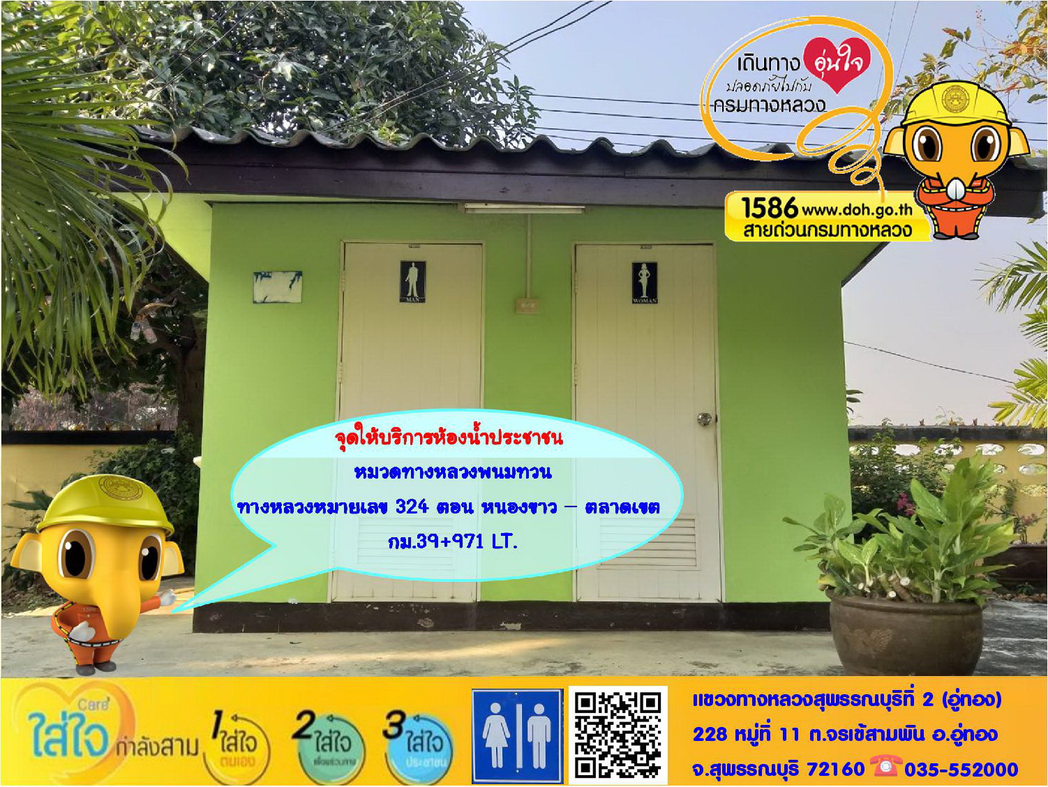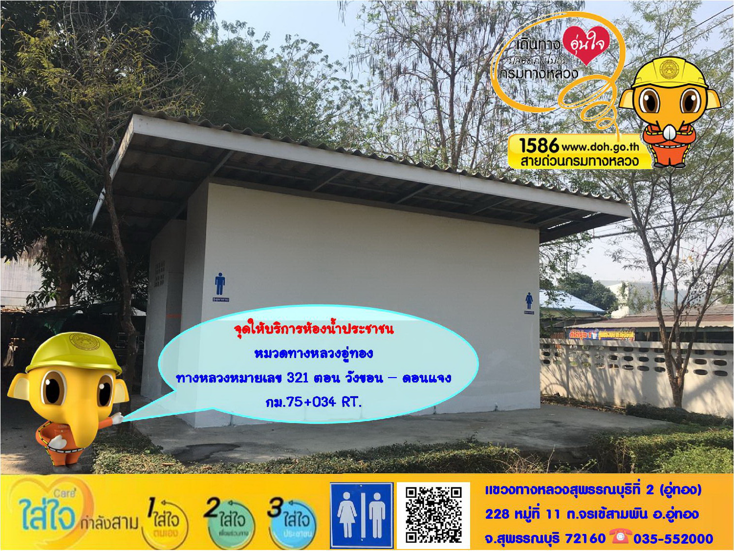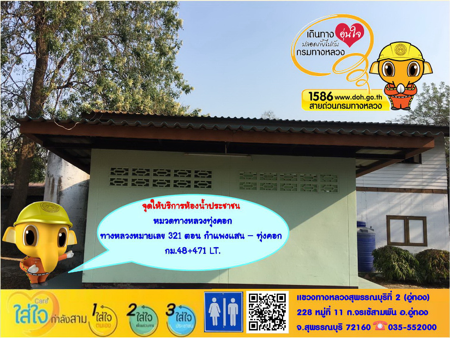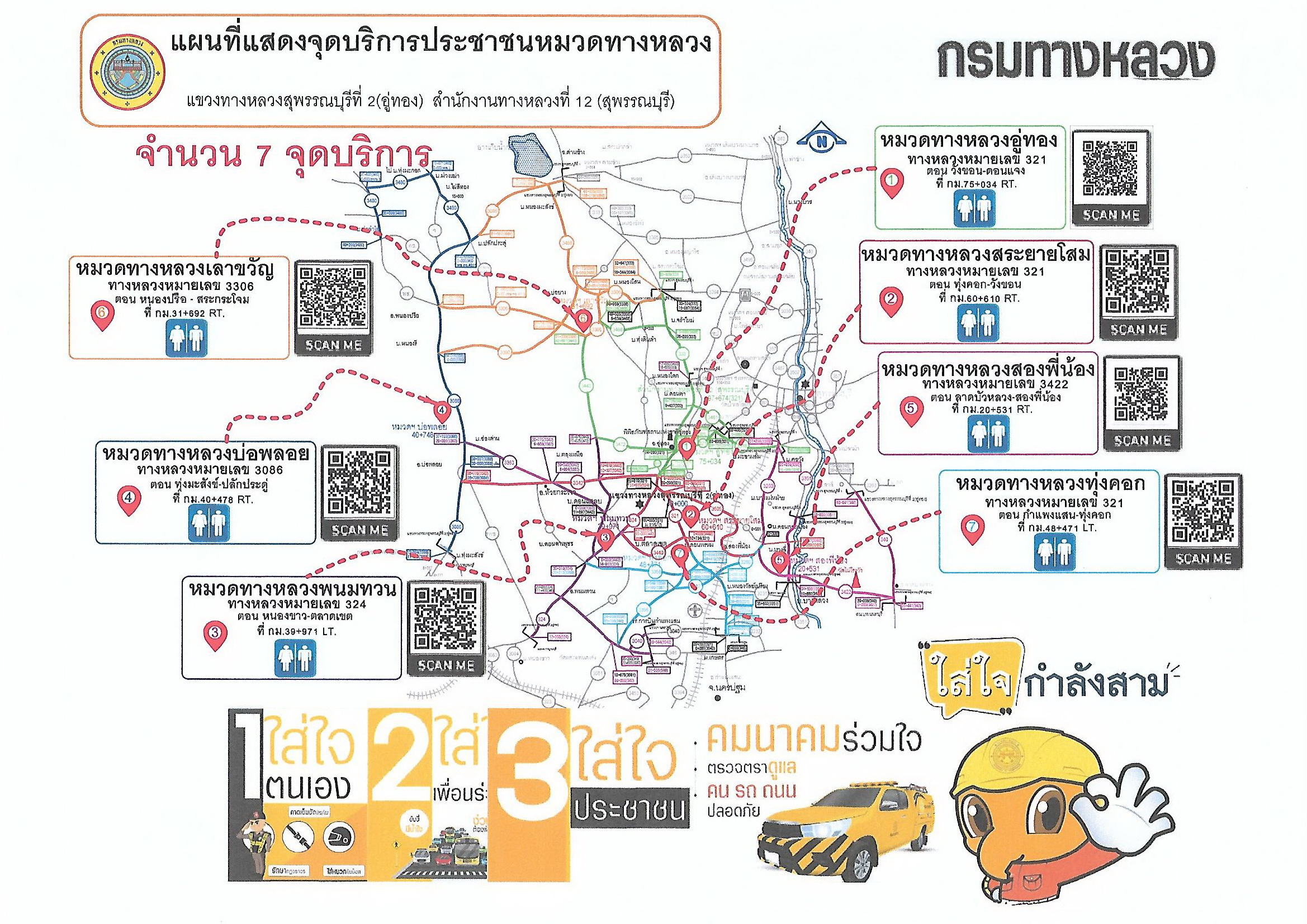 แผนที่แสดงจุดบริการประชาชนหมวดทางหลวง ของแขวงทางหลวงสุพรรณบุรีที่ 2 (อู่ทอง) เพื่ออำนวยความสะดวกและรองรับการท่องเที่ยวของประชาชนในช่วงเทศกาลปีใหม่ 2563